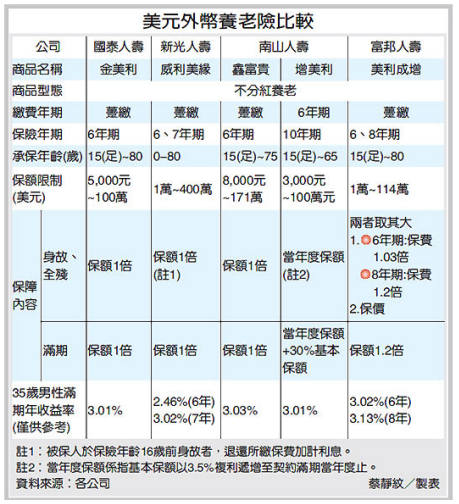 如果只想做短期節稅規劃的民眾,可選擇六、七年期的躉繳美元養老險或其他長年期保單。