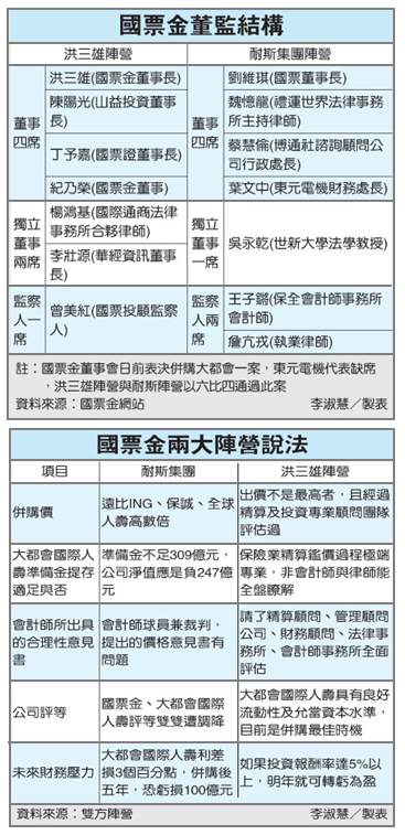 洪三雄陣營與耐斯集團在國票金董事席次是六席比五席,監察人席次是一席比兩席。上月19日國票金討論併購大都會案,代表耐斯集團的東元電機缺席,最後該公司董事會以六比四通過併購。