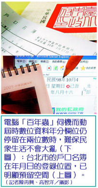 民國九十九年十二月三十一日,跨過晚上十二點後,電腦「百年蟲」伺機而動,當數位資料年分欄位由二位數九十九,跳到三位數一○○時,欄位設計若有誤失,可能讓台灣民眾一夕間生活大亂嗎?