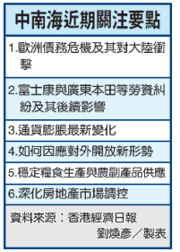 京智庫人士透露,隨著時間進入6月,中國政治踏入傳統的維穩時期,加上先後出現的歐債、罷工與通膨等國內外複雜問題,中共官方宏觀調控的政策方向,預期6月將以維穩為主調,推出重大財經政策的可能性低。