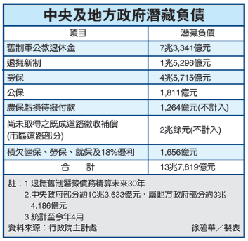 政府潛藏負債 達13.7兆元