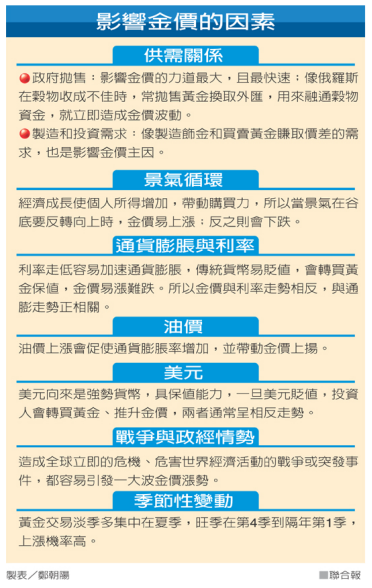 有人說,黃金價格反映的是紙幣社會的混亂和恐慌程度,從近幾年金價和國際政經情勢的連動可窺一二。