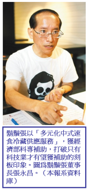 鬍鬚張這次獲得經濟部科專計畫青睞的原因是,鬍鬚張在資策會協助下,導入ICT技術,透過全程監控的冷藏鏈運輸及儲藏系統,建立起從中央廚房、物流、門市端的中式速食示範應用。