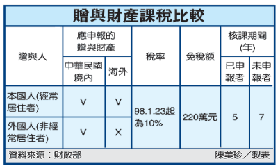 我國自去年1月23日起,不僅調降贈與稅稅率,亦取消累進課稅的級距,改採單一稅率10%課稅(之前最高可達50%),且免稅額亦提高為220萬元。