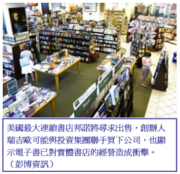 電子書大受歡迎使實體書店的經營陷入困境,美國最大連鎖書店邦諾(Barnes & Noble)3日表明將尋求出售,創辦人瑞吉歐