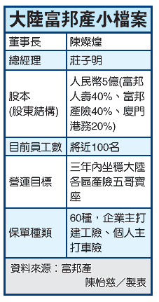 富邦產是富邦金參股廈門銀行後,在保險版圖的一大突破,也是第一家把總部設在廈門的產險公司。保監會已完成開業驗收,待收到核准函後,預計10月可以開幕。
