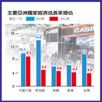 亞洲開發銀行上修亞洲開發中經濟體今年成長率預估至8.6%,其中台灣可望成長9.8%,但明年減緩為4%;中國今、明兩年成長率可望達到10.1%和9.1%;包含台灣、香港、新加坡與南韓在內的新興工業經濟體,今年平均成長率為7.6%,明年將減緩到4.5%。(吳國卿)