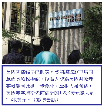 歐巴馬以展延減稅政策兩年為籌碼,換取延長失業救濟金的發放。摩根大通(JPMorgan