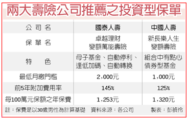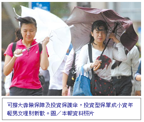 年輕的小資男孩及女孩又要存錢,又要有保險保障,該怎麼作最划算?國壽及中壽都推薦用投資型保單,同時滿足用較低的保費拉高壽險保障,又能累積資產,業者表示,20∼30歲的族群對投資型保單接受度已有提高趨勢。