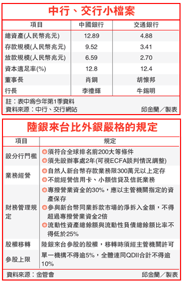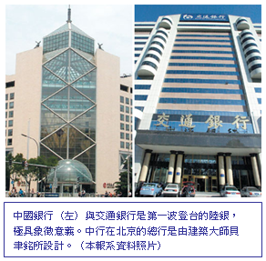陸中國銀行、交通銀行 月底台北開業