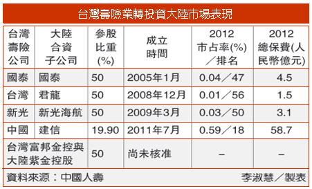 答:中壽在2011年轉投資建信人壽19.9%的股權,提供技術、支援建信相關營運業務,目前建信已成立了10家分公司,拓展速度迅速,2月新契約保費收入排行從去年底的第18名提升到16名,相信到年底,排名還會往上衝。