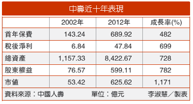 這10年來,除了2004年因為35號公報的關係出現虧損,中壽年年都賺錢,且獲利持續創新高。中壽資本適足率在300%以上,這也是少數大型壽險公司能達到此標準。