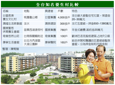 目前國內養生村,包括台塑集團、潤泰等知名企業都有跨足投資、經營,未來若壽險業也加入戰局,若以壽險業可運用資金5%計算,至少有六千億元以上銀彈可以投入。包括新壽、國壽等重量級壽險公司對此皆樂觀其成。