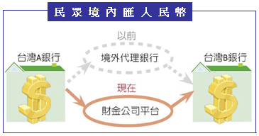 為降低這種不必要「繞道到國外」的成本,金管會與中央銀行自去年起規劃建立「外幣結算平台」,今年三月營運,第一階段以「境內美元匯款」結算業務為主,九月卅日起新增人民幣境內、外匯款結算業務。