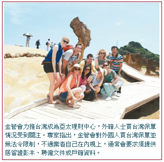 金管會力推台灣成為亞太理財中心,外籍人士買台灣保單情況受到關注。專家指出,金管會對外國人買台灣保單並無法令限制,不過業者自己在內規上,通常會要求須提供居留證影本、聘僱文件或戶籍資料。