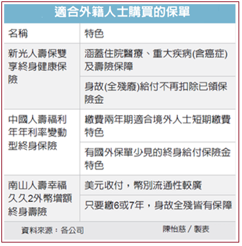 中國人壽也說,外籍人士買中壽的保單,須提供居留證影本,且不受理投保長期看護險附約,並按保戶原居住地的政經情勢決定承保與否。