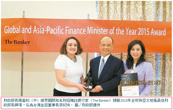 Banker)雜誌頒發2015年全球與亞太地區最佳財政部長。