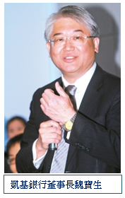 凱基銀行董事長魏寶生是國內極少數具備金融管理公職背景,又擁有銀行、證券、保險等三大領域實務經驗的人士。魏寶生凡事正面思考,認定機會永遠存在,隨時將可用資源整合,為企業面對變動尋找solution(解決方案),而他自己擔任董事長則定位為solution