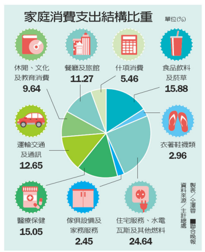 家庭消費食衣再減 醫療、餐旅新高